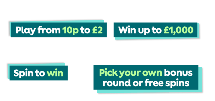 There are smaller instant win prizes up for grabs, as well as the big one. The top prize symbol is 1 row high and 5 across in size – you definitely won't miss it. Hit the Jackpot and you could be walking away with £1,000! How's that for a modern-day golden fleece?